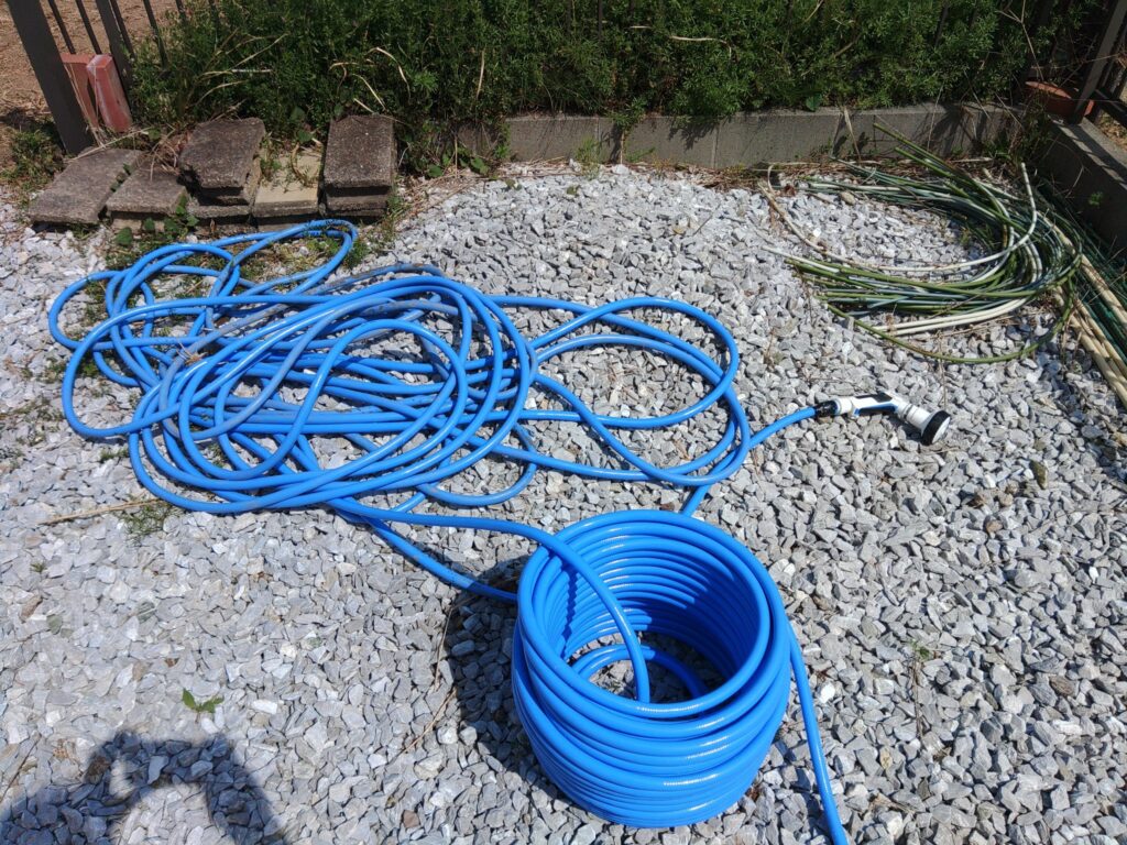 これは水道からの距離があるので、通路などの邪魔にならないように巻いてます。