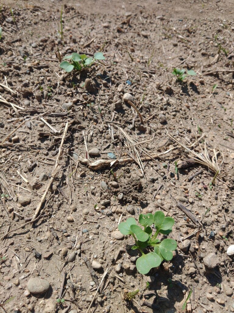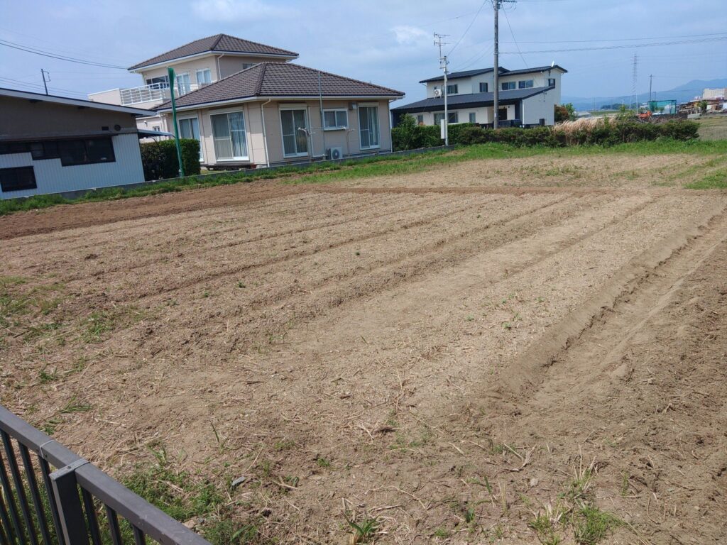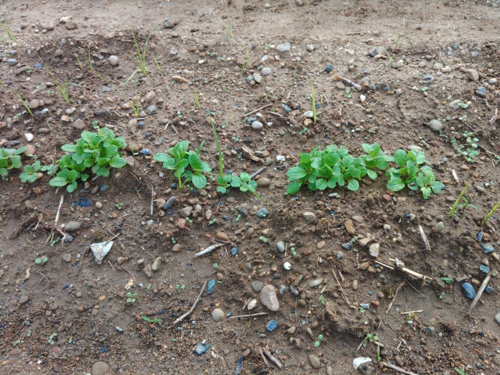 あとは、種をまいた種類は、にんじん、大根、葉ネギ、じゃがいも、白ネギ、枝豆、きゅうり、小松菜、ルッコラ、ロメインレタスです。