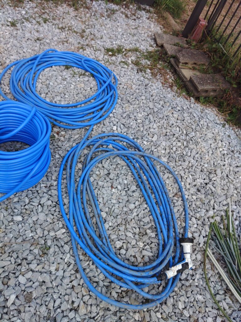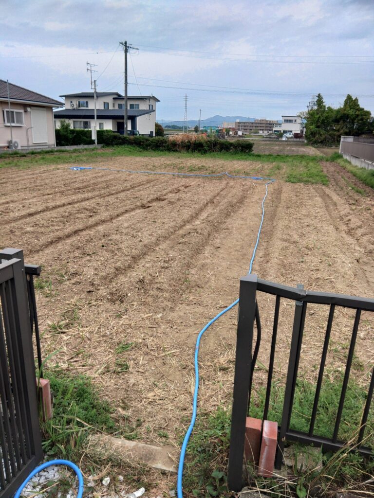 水道は家の前にあって、畑は家の裏にあるから長いホースが必要で、普通で売っていない100mのホースを使っていますよ。