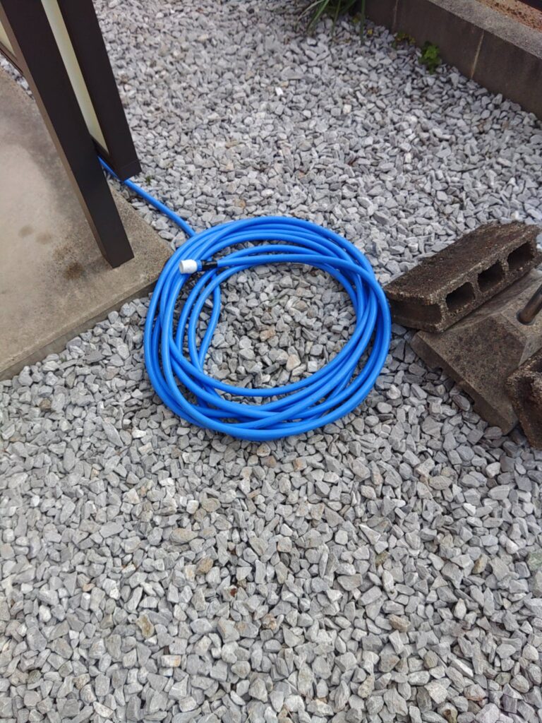 写真からでも、長いホースを持て余しているのが分かると思います。(汗)