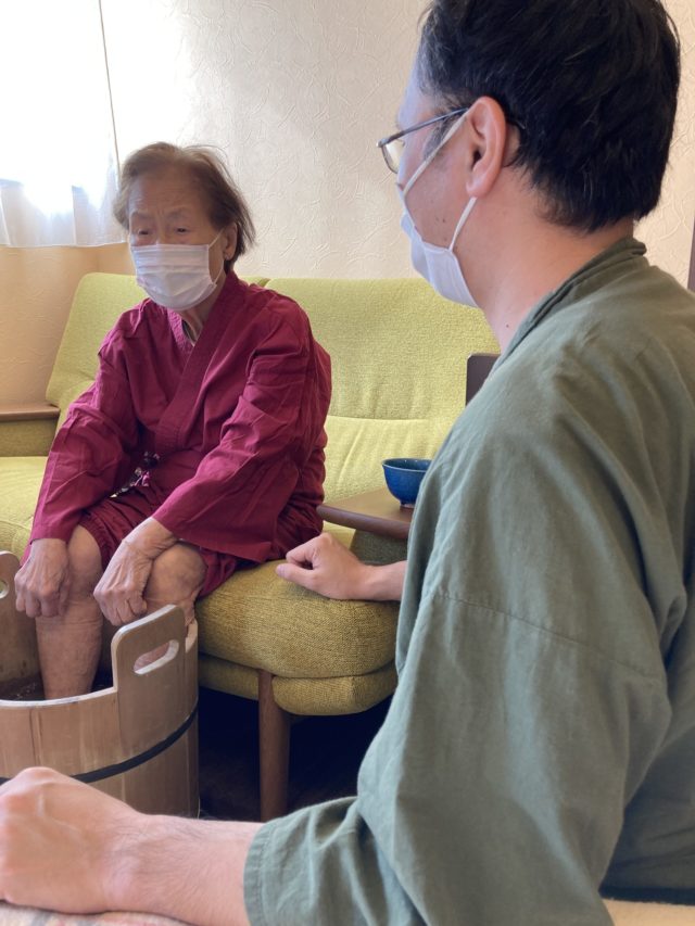 施術前の足湯でいっぱい温まって状況確認をしてから、お客さまに合った施術をします。