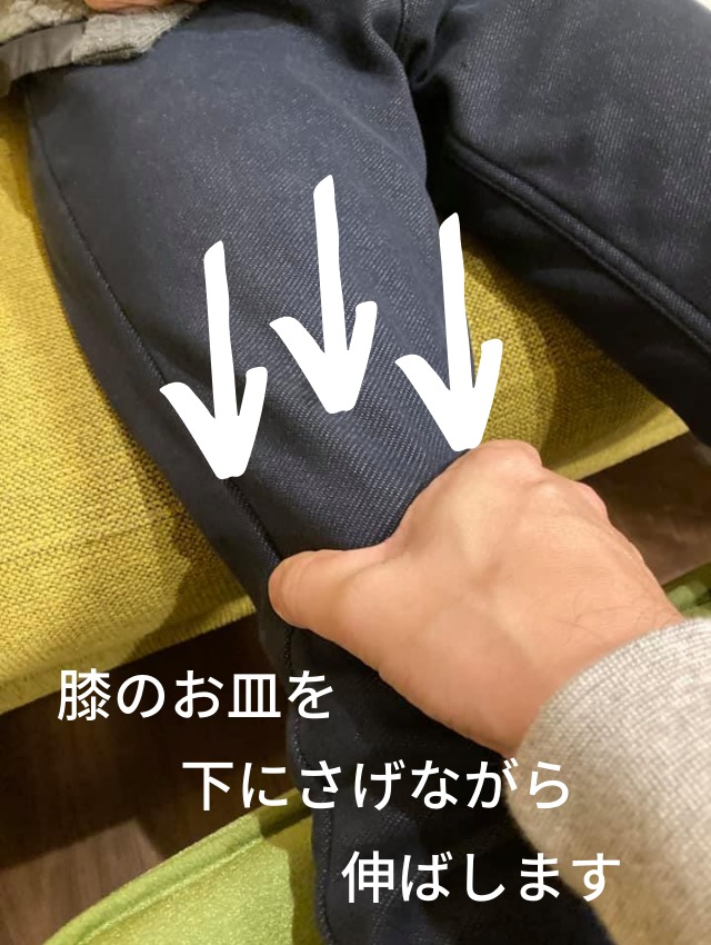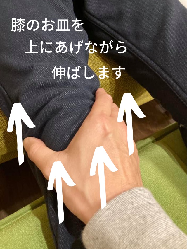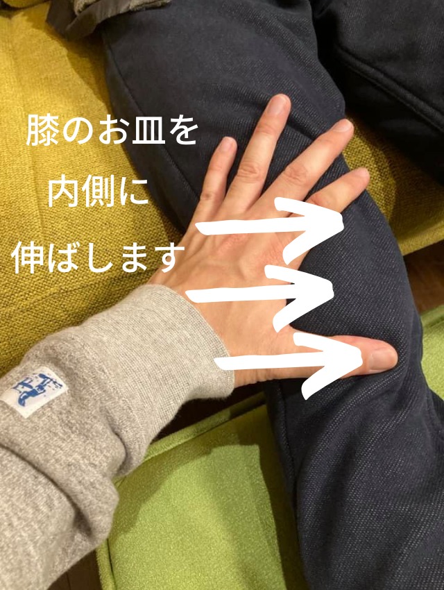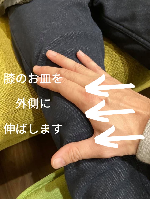 痛みが少し落ち着いたら、お皿の動きを整えるストレッチを行います。