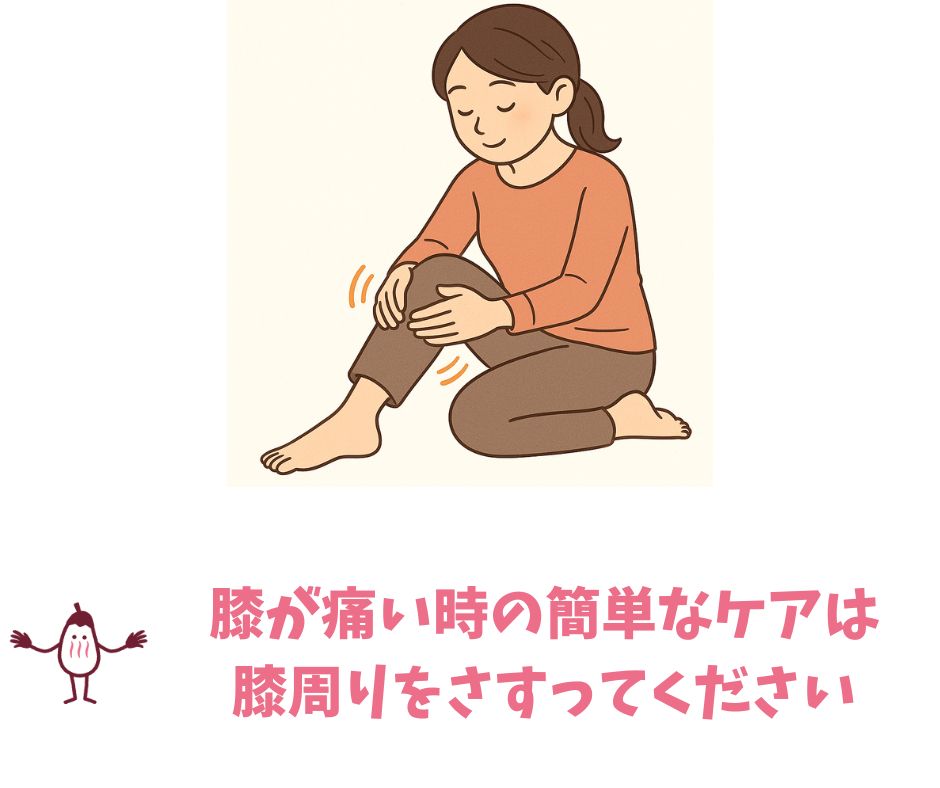 痛みを感じたら、まずは膝全体をやさしくさすることから始めます。