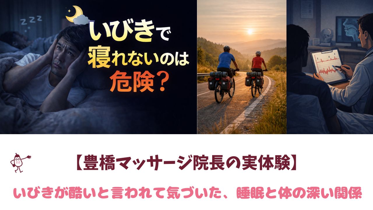 1. 【豊橋マッサージ院長の実体験】いびきが酷いと言われて気づいた、睡眠と体の深い関係