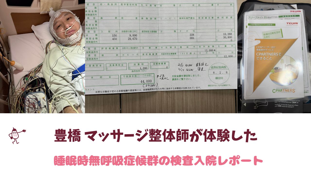 本日は、《豊橋 マッサージ整体師が体験した睡眠時無呼吸症候群の検査入院レポート》を、院長がブログで書いていきますね。