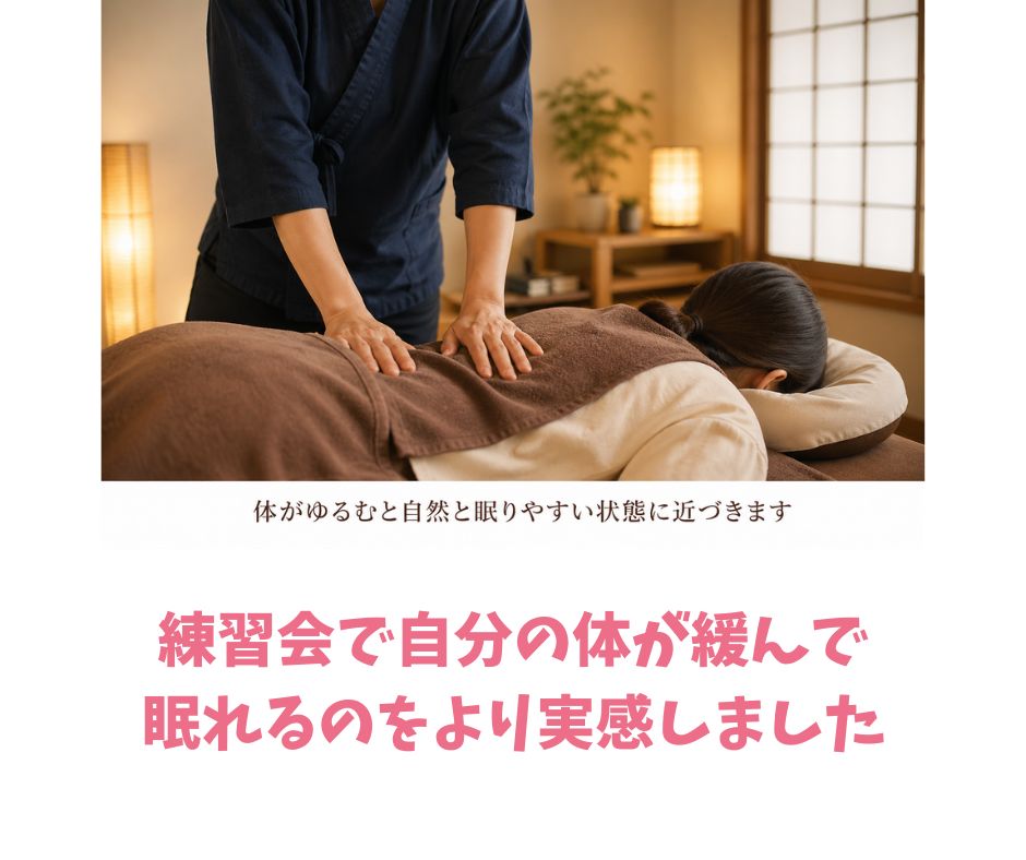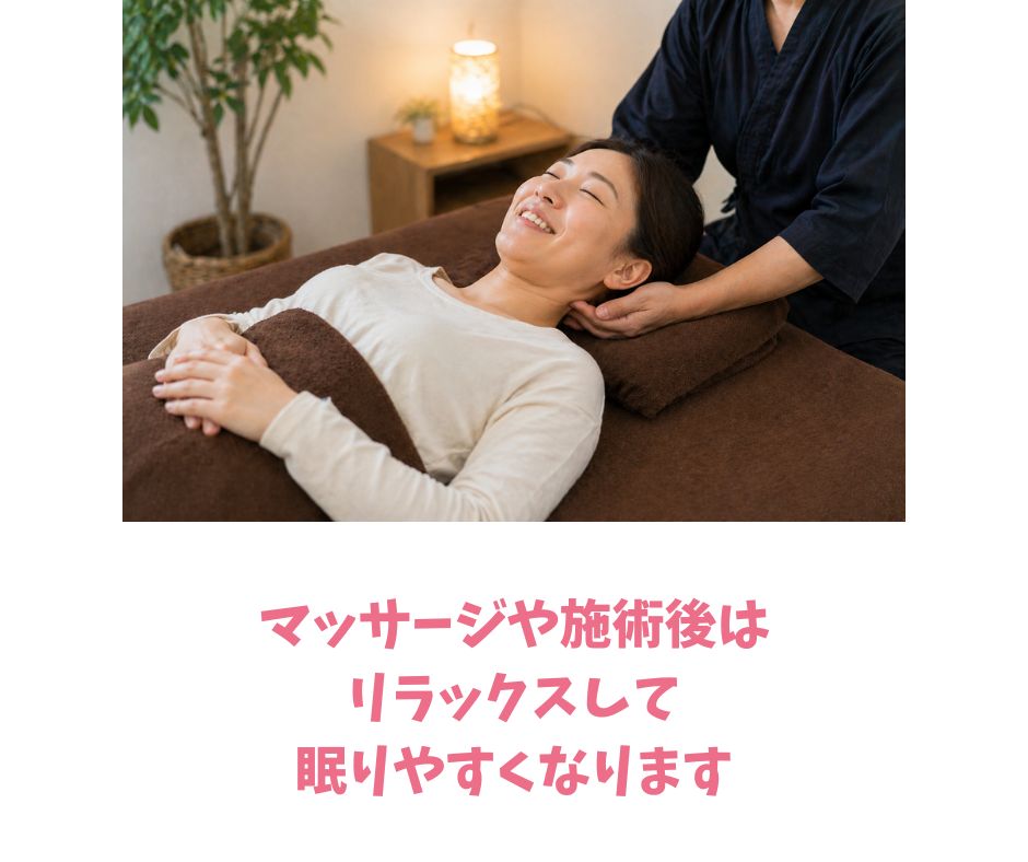 お客様の声と自身の経験から、マッサージと睡眠は関係していると感じましたよ。