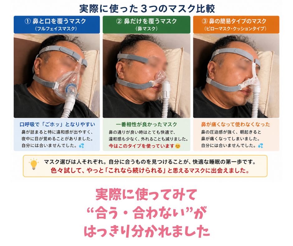 (睡眠時無呼吸症候群 マスク 種類 違い)を試して感じたこと