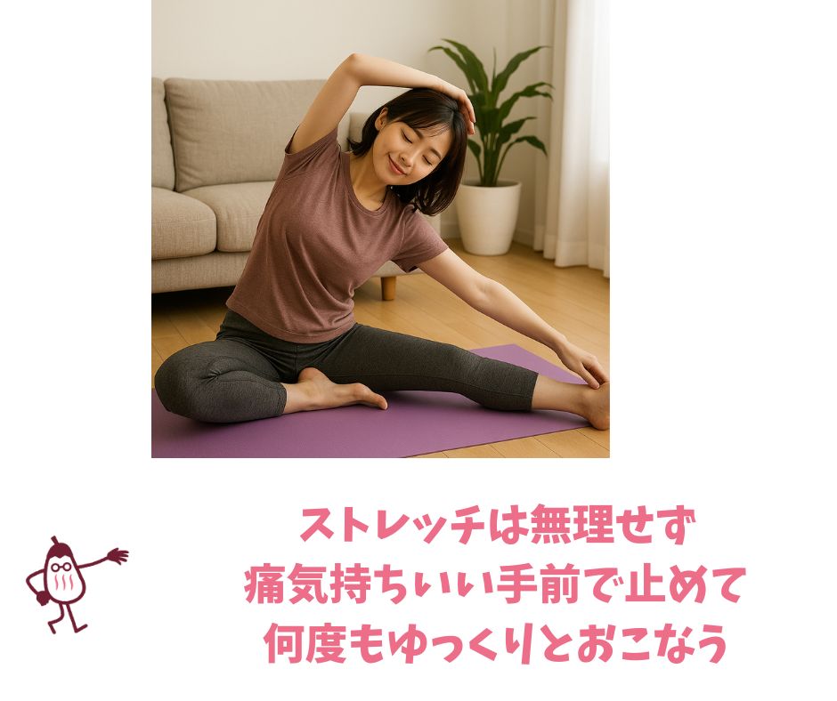 痛い方向に無理をせず、“痛気持ちいい手前”で止めること。