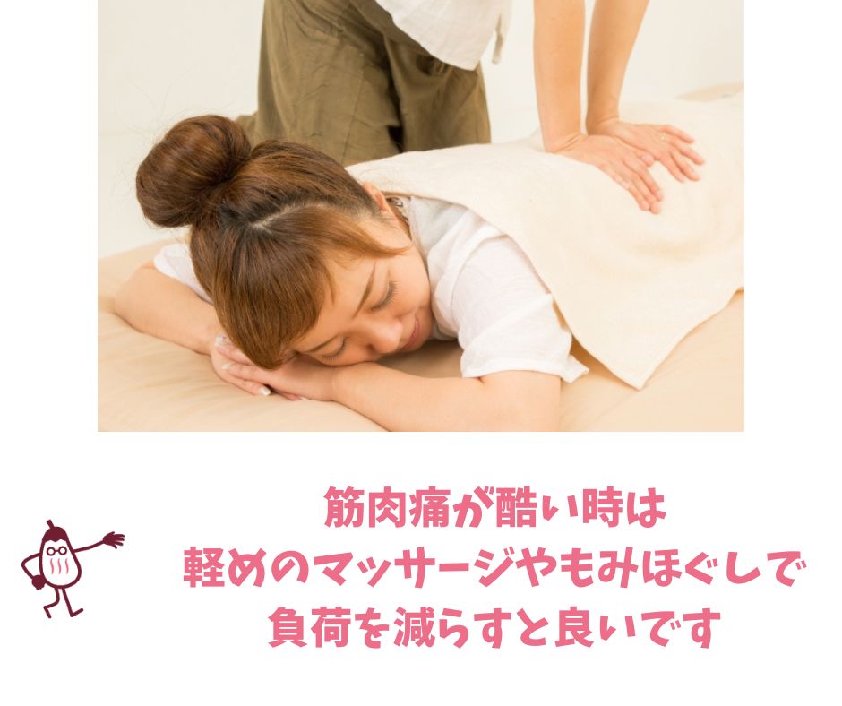 ①軽めにマッサージやもみほぐして筋肉をゆるめる