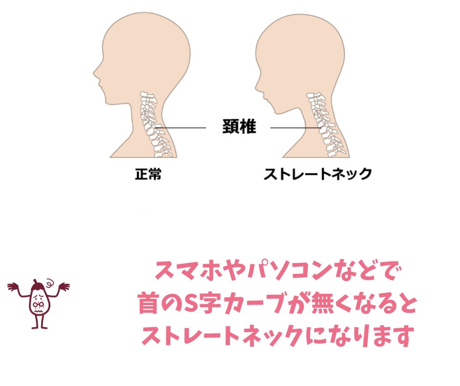 本来、首の骨(頸椎)はゆるやかなS字カーブを描いています。