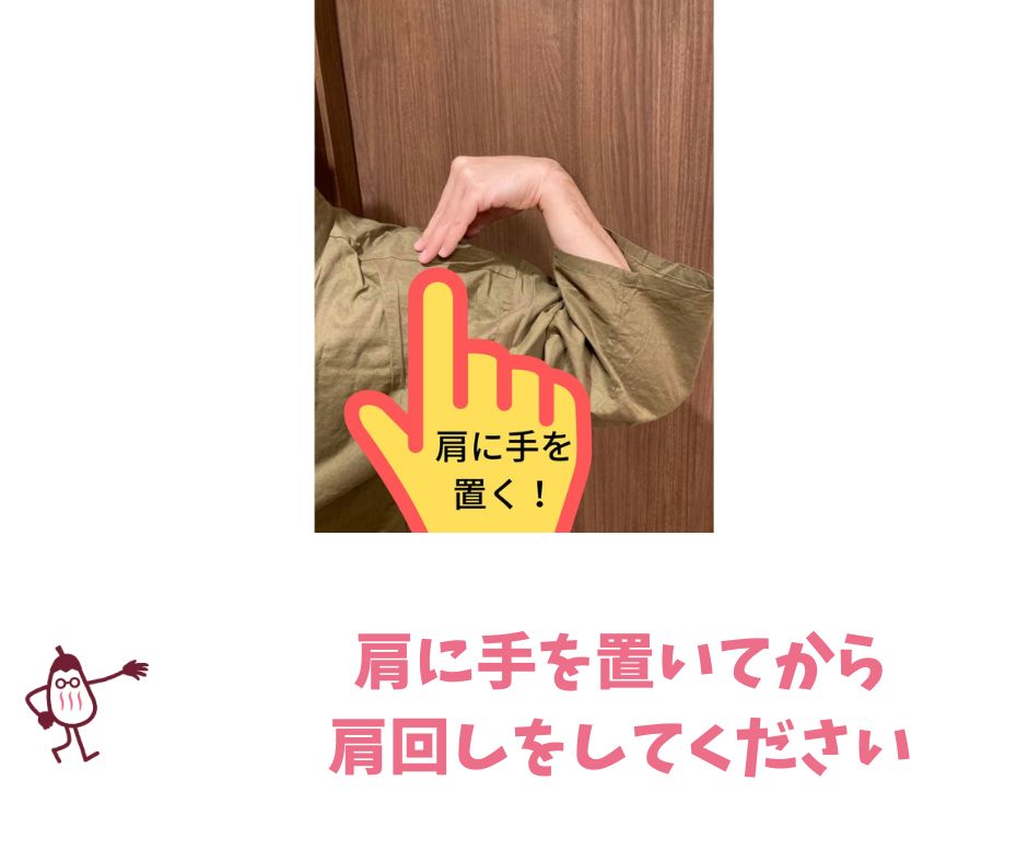 肩に手を置いてから、肩回しをしてください。