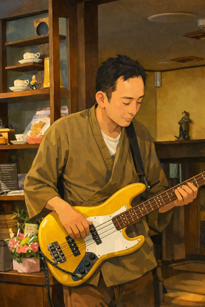 自分は、カフェアコーディアナ育ちのベーシストです。