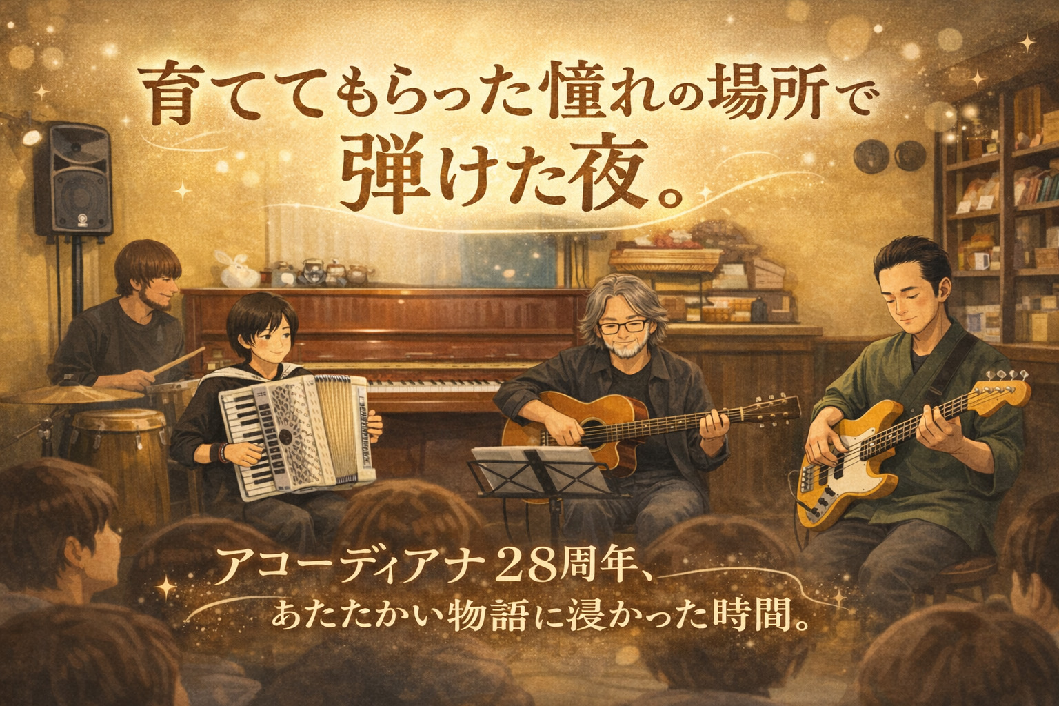 豊橋の整体師が育ててもらった憧れの場所で弾けた夜。アコーディアナ28周年、あたたかい物語に浸かった時間。