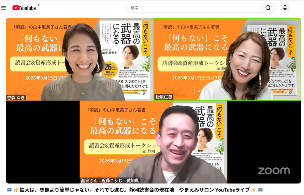 さらに、もっと深堀りをしていきたいので、この静岡読書会の報告シェア会をやまえみサロンのYouTubeライブで行いますよ。