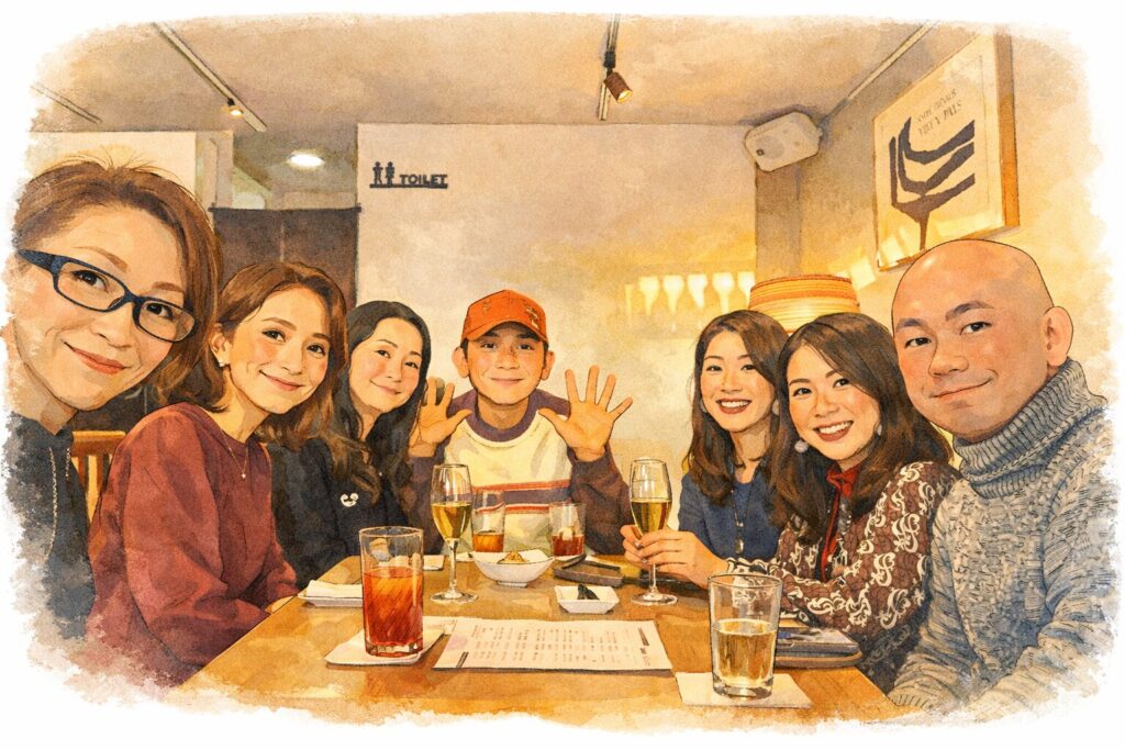 1月のある日、山中恵美子さんが師と仰ぐ西田文朗先生に挨拶に行く前に、静岡のゆきさんがワイン会を主催してシェアしていただきました。