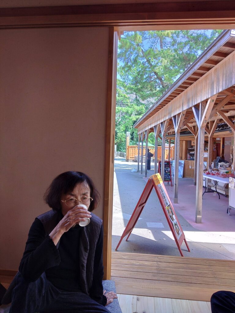 多目的トイレ待ちで、通りがかりの人から「ここは良い場所」と聞いて、気を取り直してくれました。